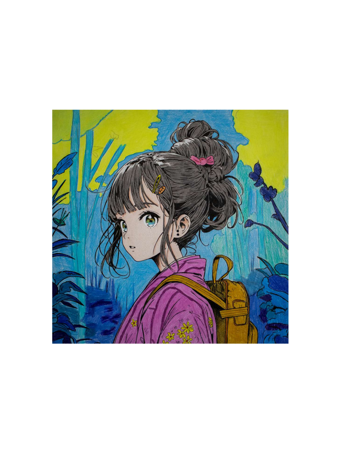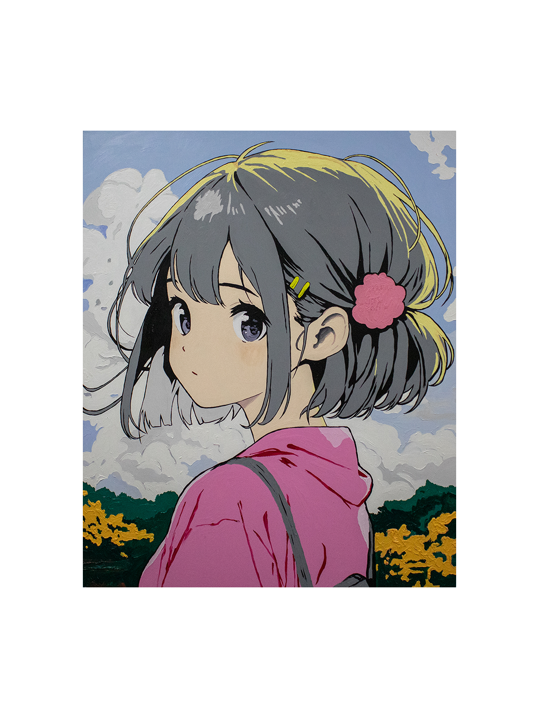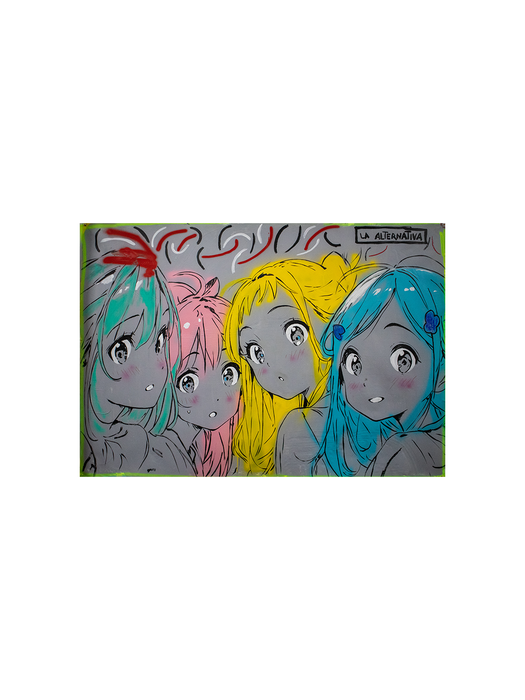 Fran Ramírez Viola, whose artistic name is VIOLA, is a Spanish neo-pop artist whose work aims to transform and decontextualize the image, creating through their art an eclectic and daring iconography where the critical element emerges through compositions. By merging the essence of anime under the influence of animation in general and particularly Studio Ghibli, they develop female characters influenced by Asian aesthetics but born in Andalusia, exuding an ethereal serenity and captivating vitality that sparks the viewer's imagination about their own inner journey.