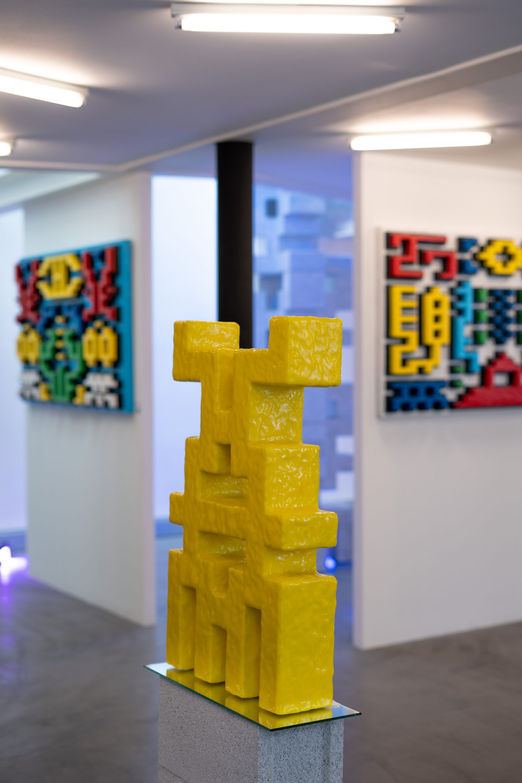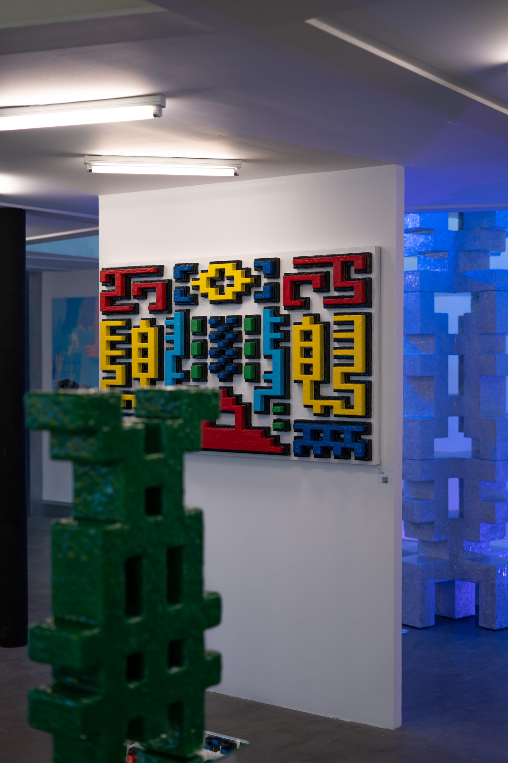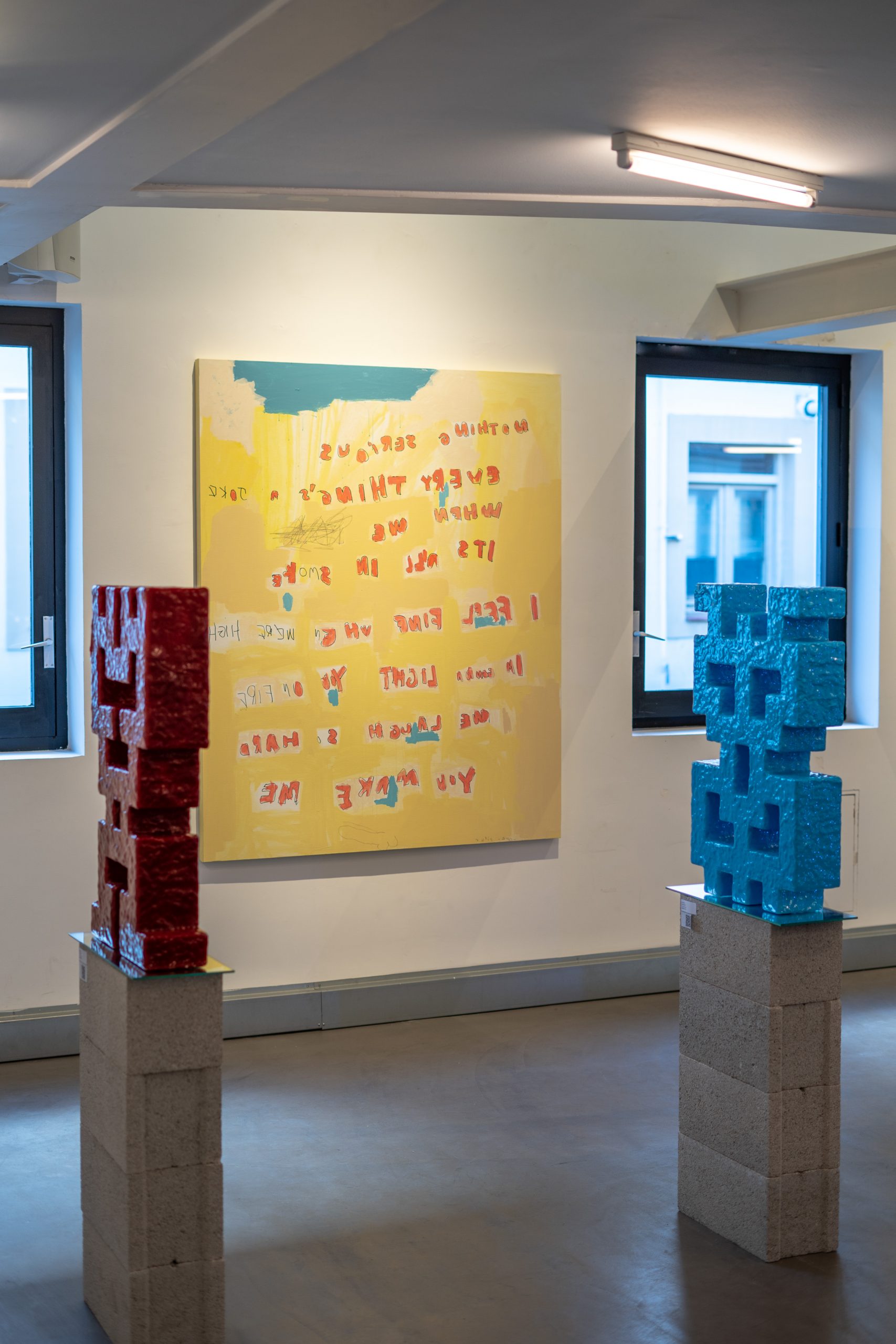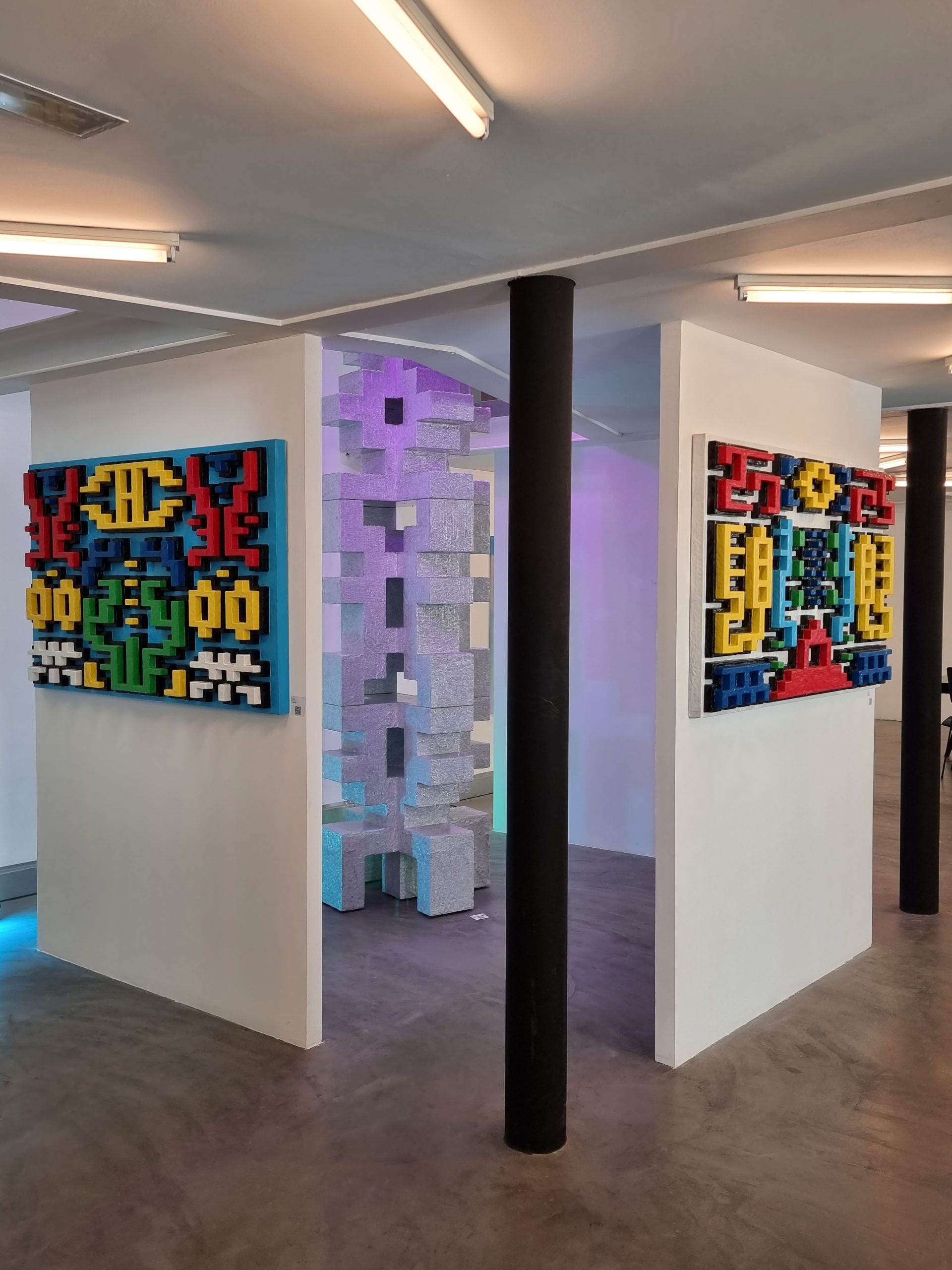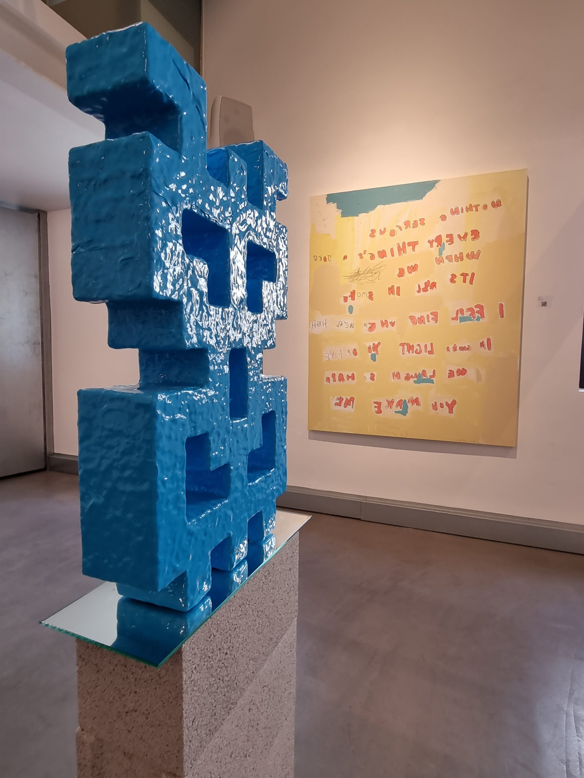 It is a mixture of painting and sculpture that speaks to us about symbols, languages and portals, and about how to sublimate the everyday and reconnect with the energy of the cosmos.