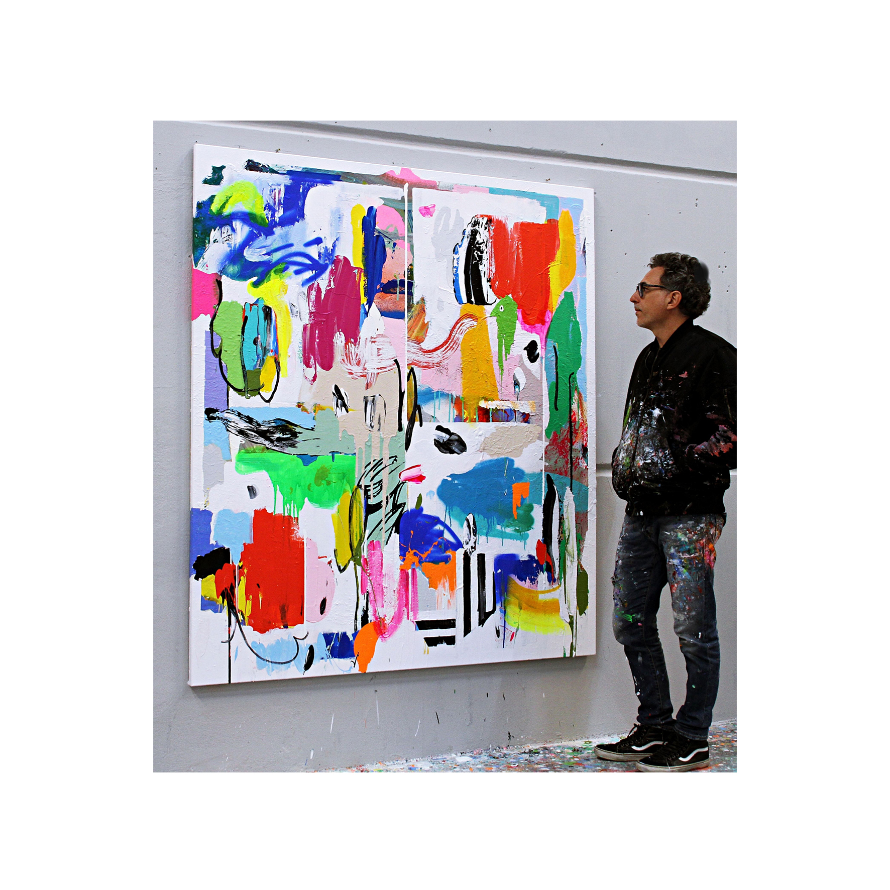 Giving continuity to the research on the pictorial gesture that the artist has been carrying out since the beginning of his career, the last years of the artist’s work are marked by a more alchemical way of investigating and producing his work. In this way, the exhibition incorporates works of great formal richness and allegorical complexity, inspired by a more sophisticated urban language, as well as visual references to the culture of comics and graffiti that corroborate the importance of abstraction to understand the world we inhabit, as well as the artist’s position of relevance among the most outstanding creators of the moment.