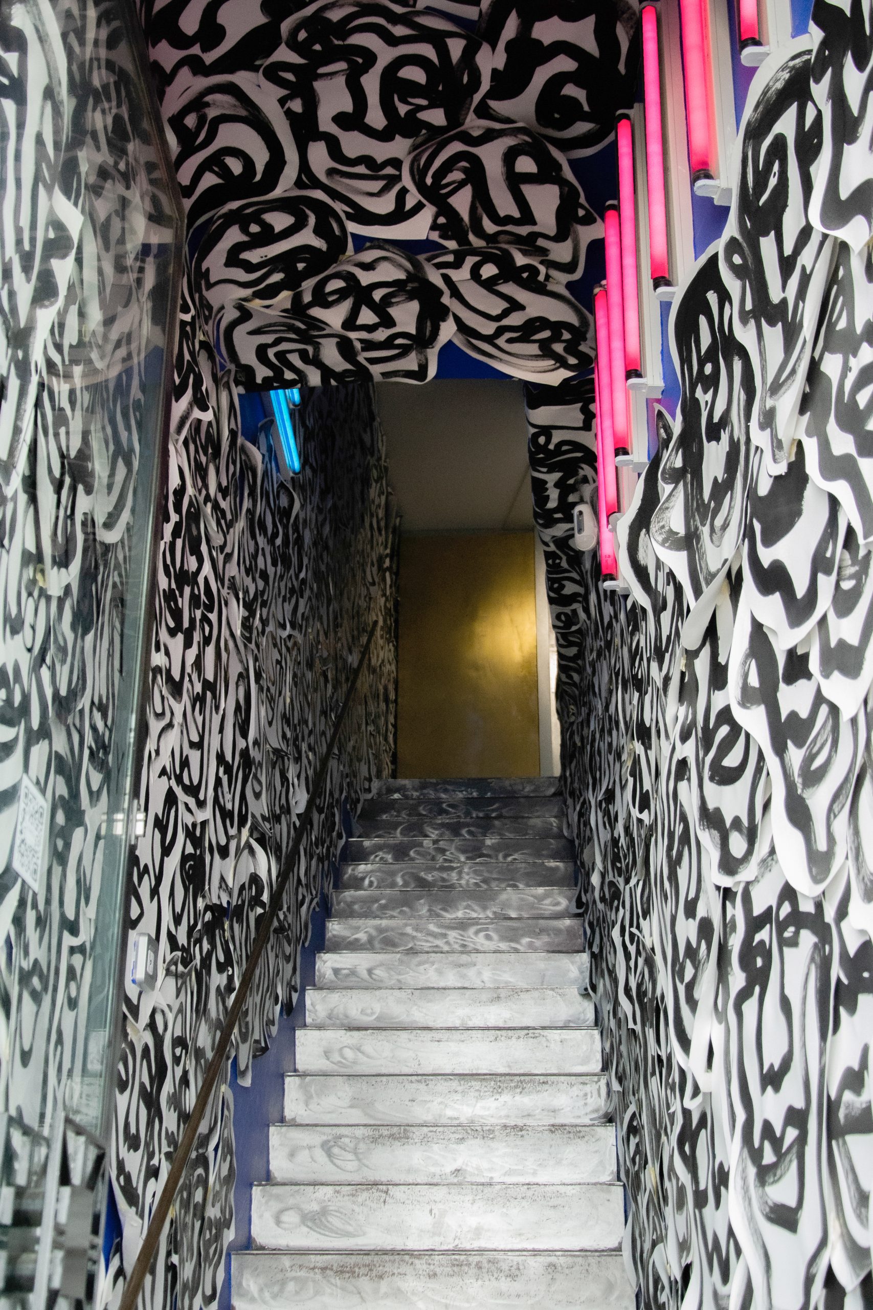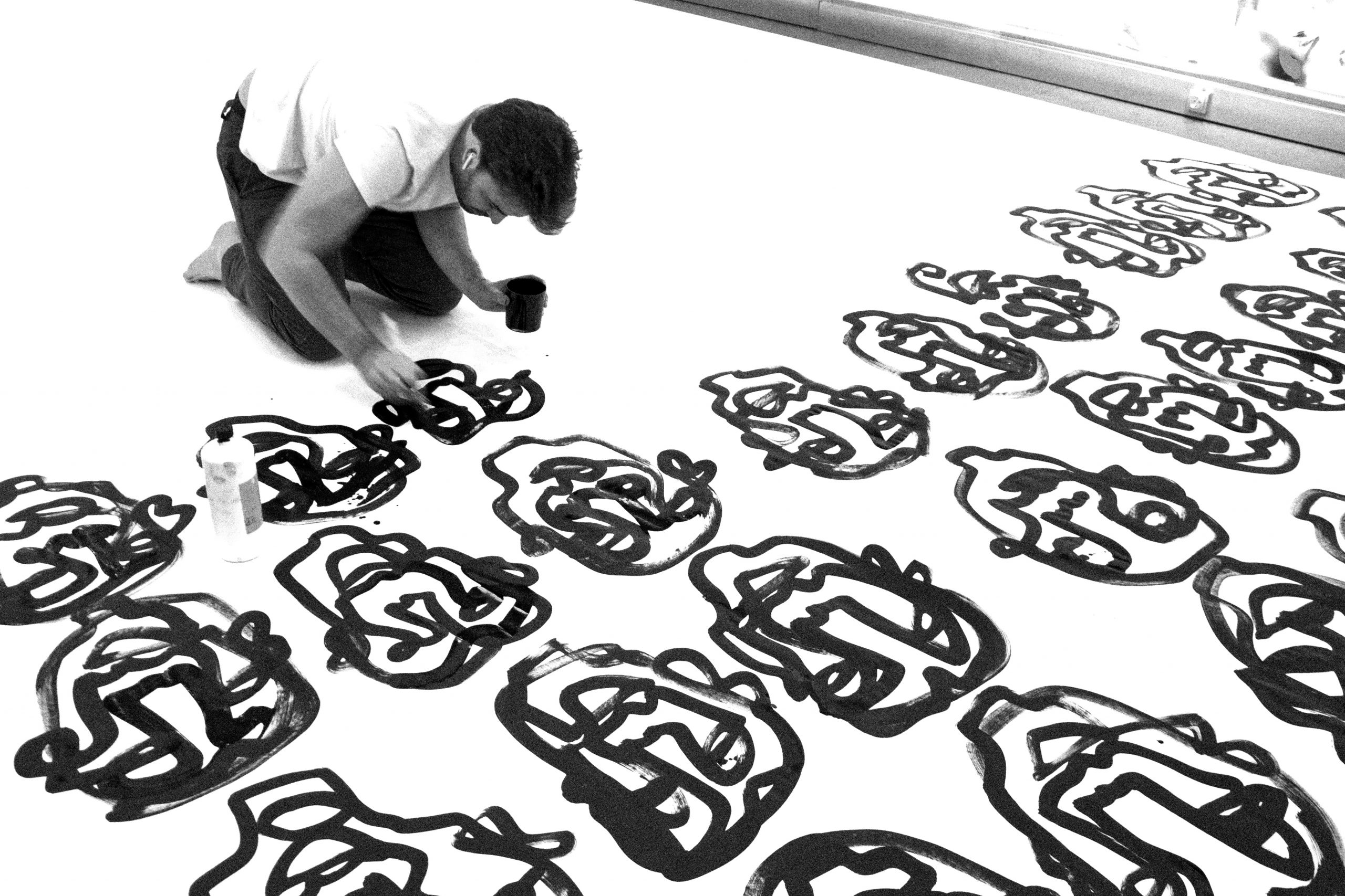 Timothy devotes himself to answering this question through single-line drawings that cover entire spaces, often with just ink and paper, and rapid movements that allow him to move in uncalculated ways.