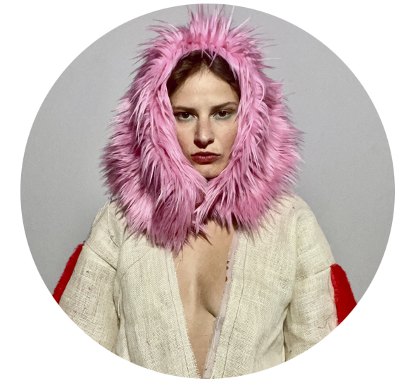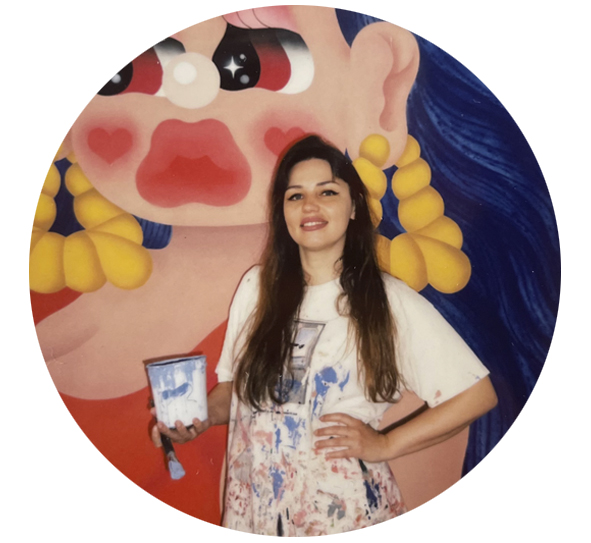 Ancestral elements such as fruits, pitchers, stones, swords... coexist with more “aesthetic”, street and futuristic elements that make up the artist’s dreamlike imaginary, full of contrasts and sweetly aggressive self-portraits.