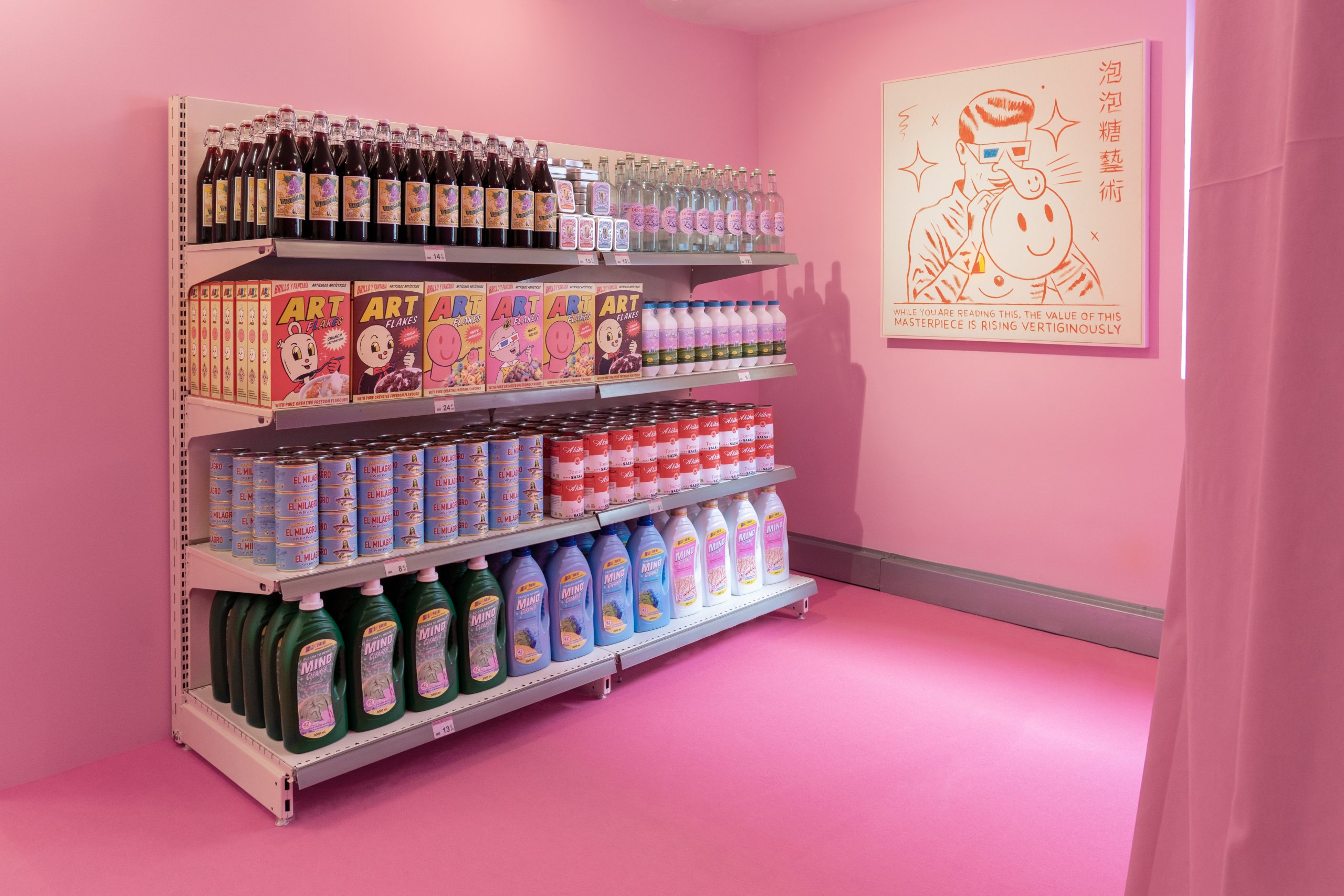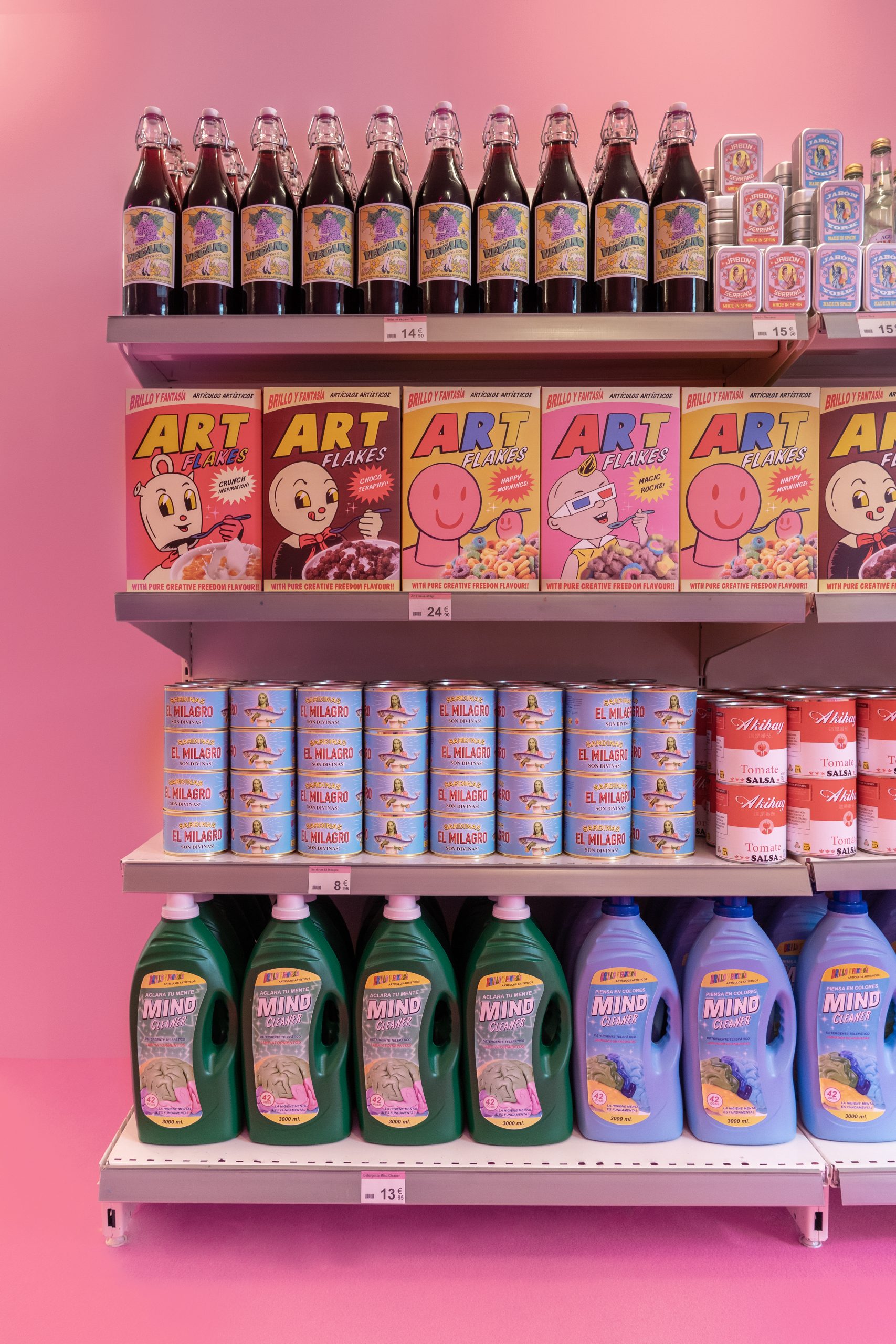 The project SUPERMERCADO MÁGICO by Brillo y Fantasía: Superalimentos para tu alma, is presented in a scenography that reproduces and re-interprets a neighbourhood supermarket in the context of an art gallery. The idea is to play with the context to question our perception by blurring the boundaries between what is considered art and what are considered commercial products. Here we will present a fantasy: a series of superfoods for the soul of a new species of superhumans. At the same time we address the issue of the excessive inflation of commodity prices, relating an ordinary supermarket to the so-called art market where prices can skyrocket to infinity and beyond.