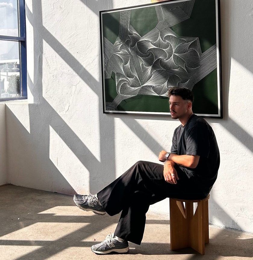 Valentin Elias Renner grew up on the edge of the Alps and later in Ulm, where his passion for art and exploring the world began early. Inspired by Marco Polo, he dreamed of discovering new worlds. In 2018, on a small Indonesian island, he found the inspiration for his art: a map where guests marked their hometowns with threads leading to the island.