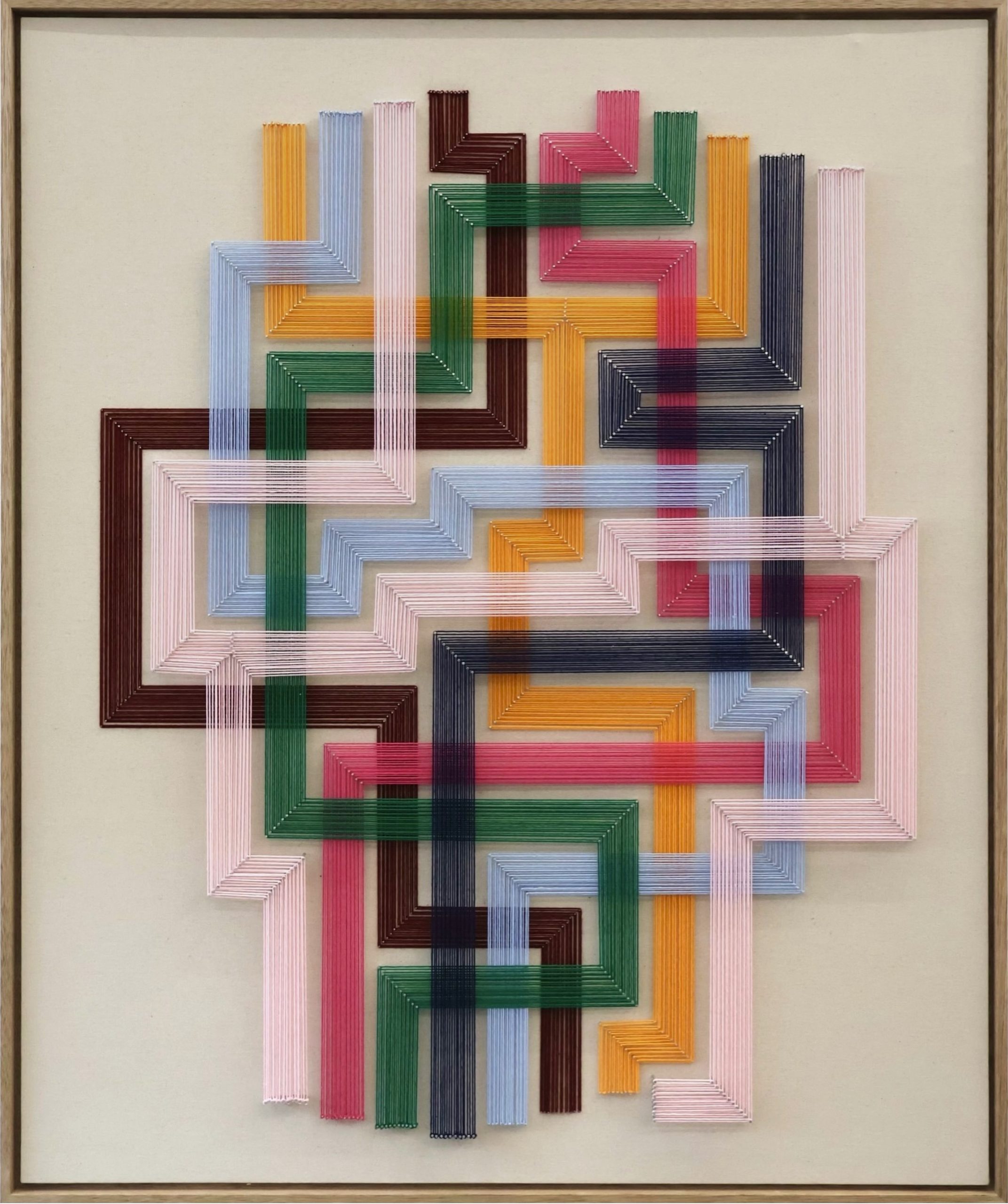 From this idea, Renner developed his technique, using nails and threads to create a three-dimensional viewing experience on two-dimensional surfaces. Originally intended to document his travels, he first created smaller pieces in his home. After moving into his studio in Hamburg’s Grindelviertel, both the scale of his work and his creativity expanded.