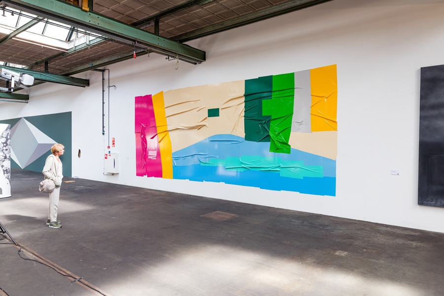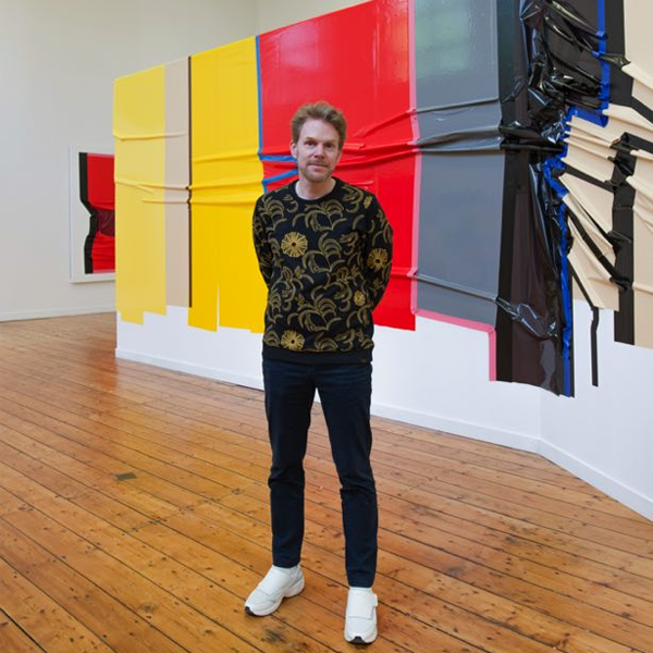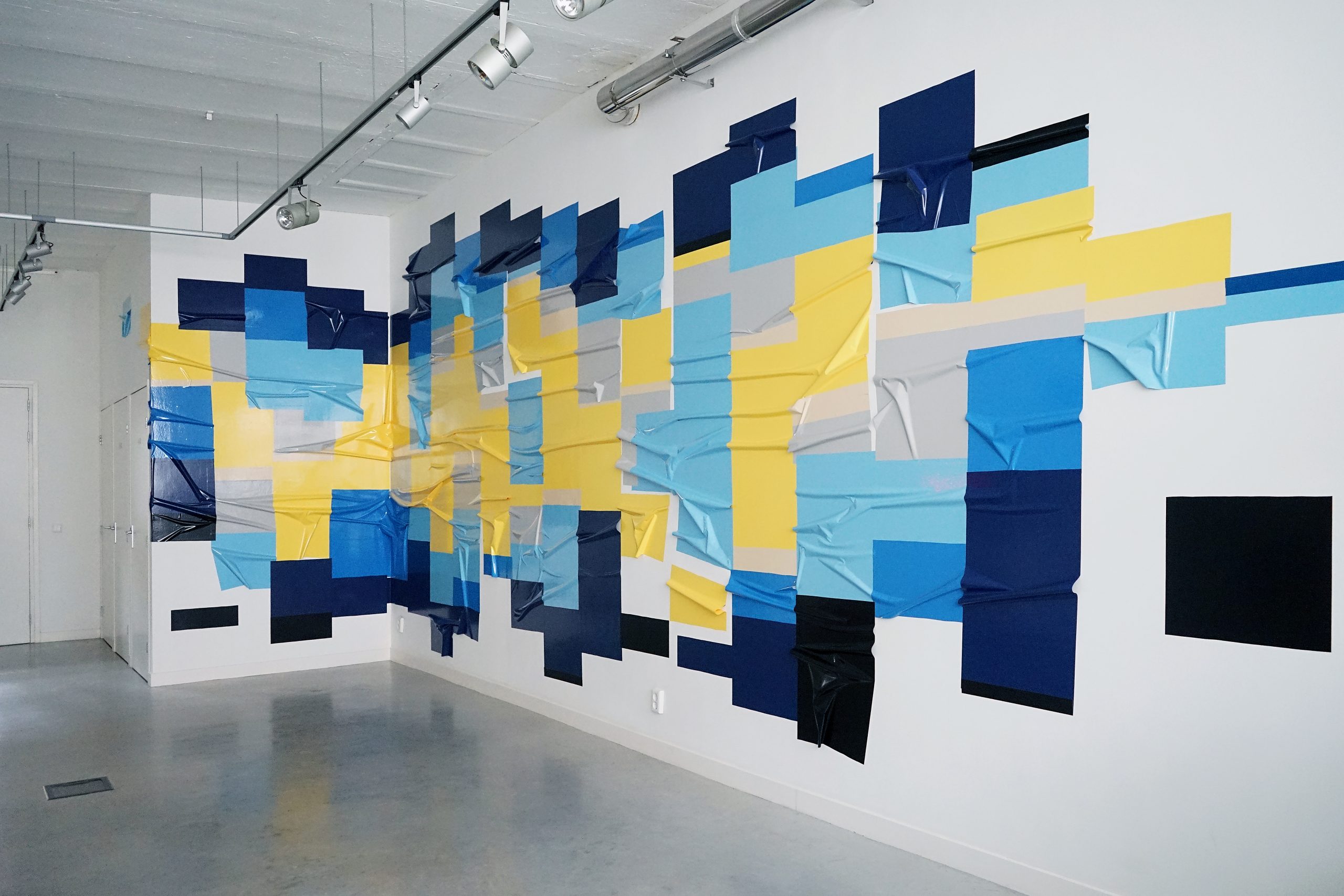 Jochem Rotteveel (1976, The Hague) investigates the picturesque qualities of duct tape and plastic foil and approaches these materials in a similar manner to painting. Rotteveel has found that tape and plastic foil are the perfect materials to investigate composition, colour, and the borders of an artwork. Rotteveel has been a self-employed artist since 2009, exhibiting his work in Barcelona (SWAB), Madrid (Espacio Naranjo), Shanghai (Pantocrator Gallery), Berlin (Preview Berlin and Gallery Weekend), Rotterdam and Amsterdam (various art fairs). Rotteveel’s artworks are applied on either dibond panels or as murals, directly mounted onto the wall. The works illustrate his artistic research on the fluid boundaries between disciplines, materials and the division between the carrier and the work itself.