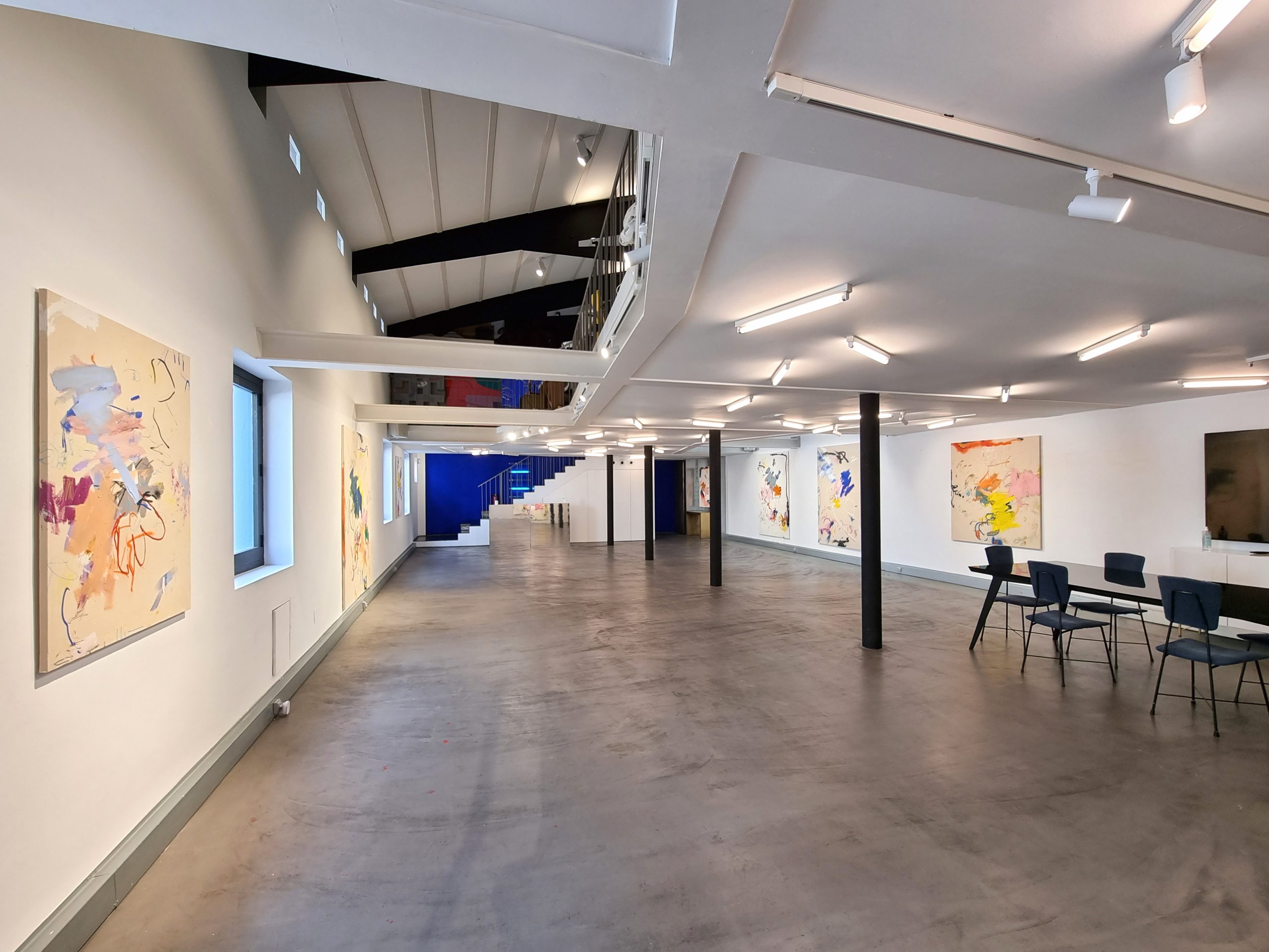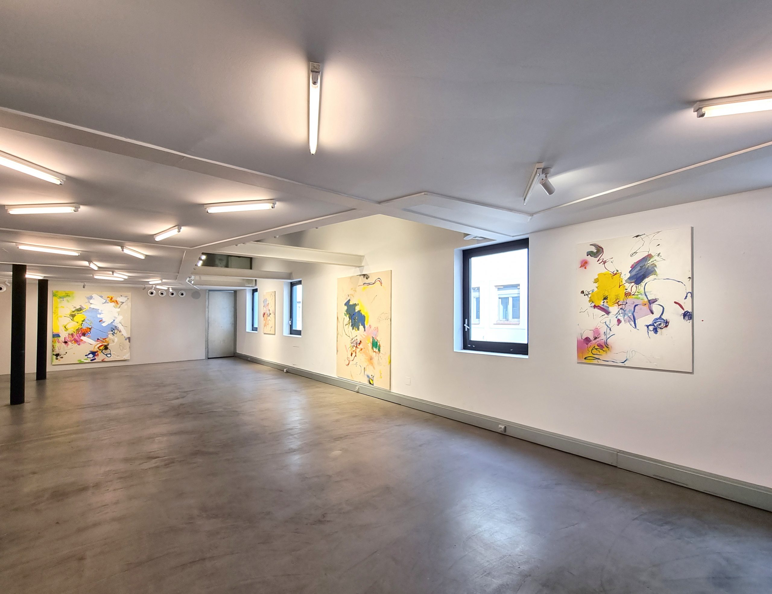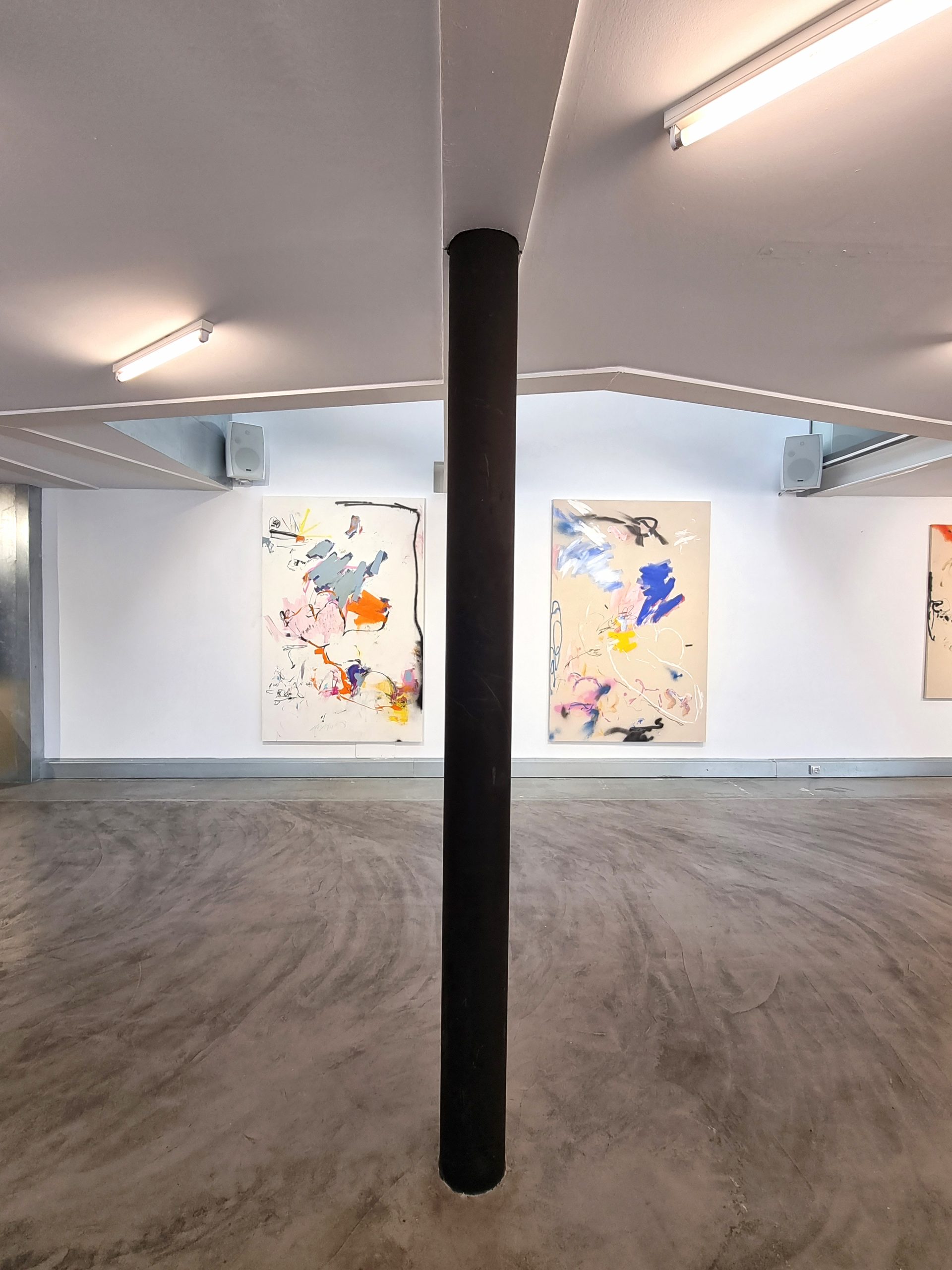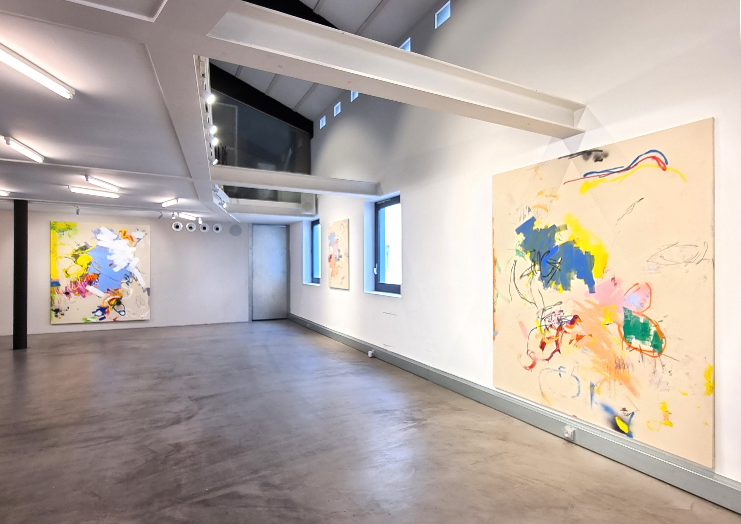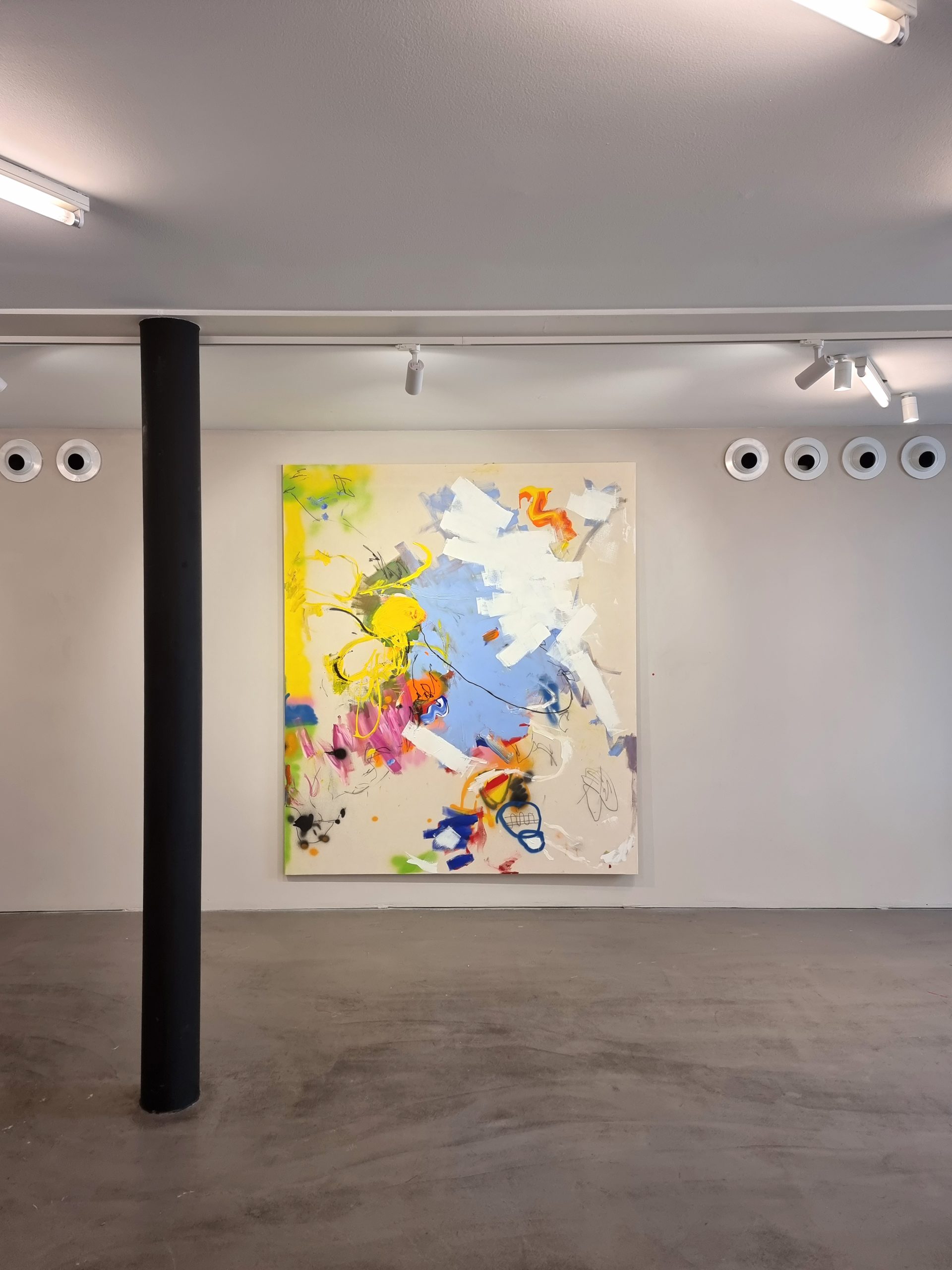 The large format of the works allows him to make the very action of painting a form of meditation in which to release thoughts crammed inside him and channel his emotions.