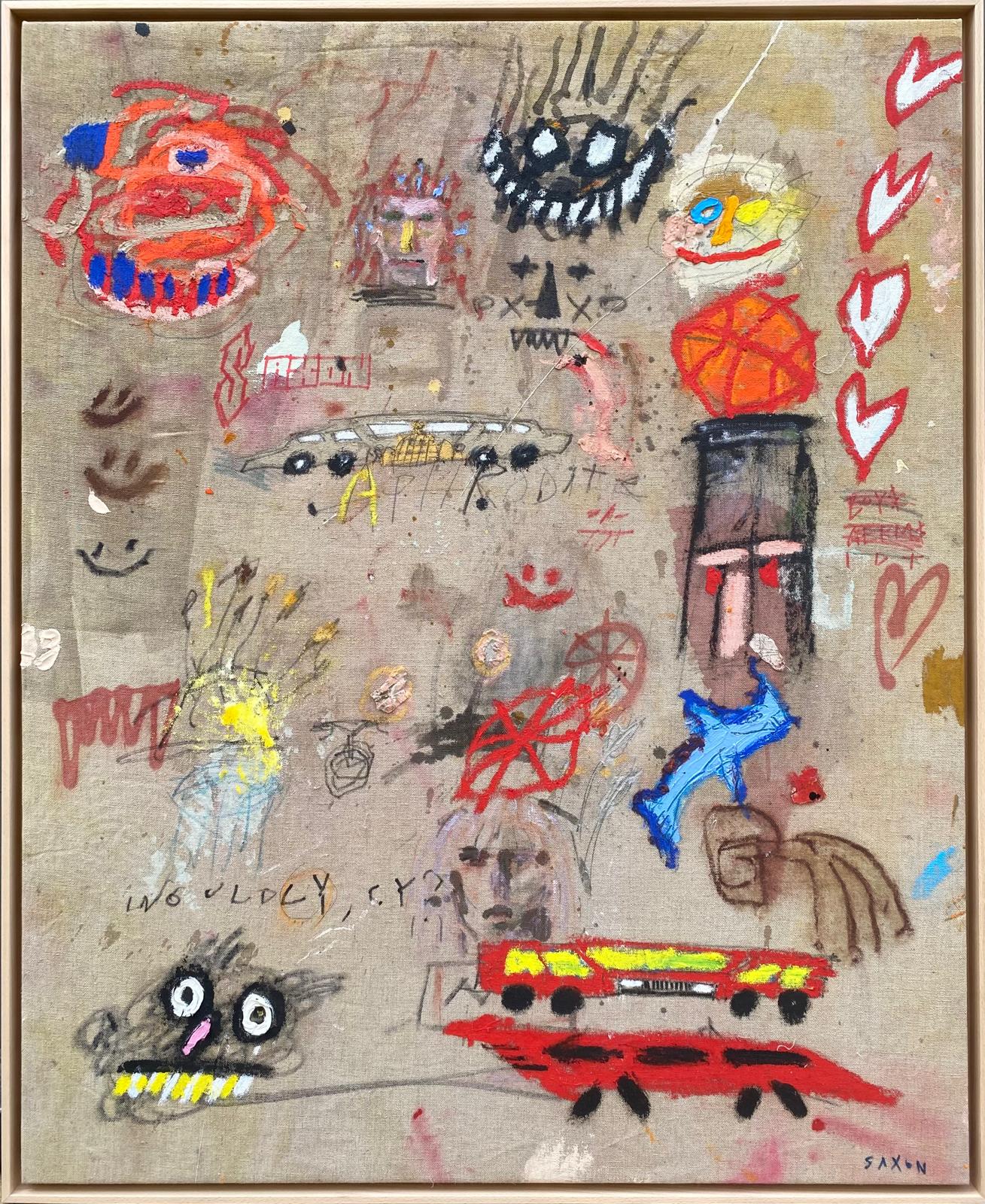 ‘In 2016, while living in New York, I spent a lot of time wandering the streets by myself, taking notice of the patina on everything – on the footpaths, buildings and stoops, all the graffiti and weathered concrete. I started to build a fascination with the age and decay of things. Like these wanderings, my paintings and sculptures have a mixture of movements and marks that could almost be seen musically. I like the pieces to flow like Wassily Kandinsky and Cy Twombly but to have pockets of other things too: areas of roughness and “mistakes” coming to the foreground, but pushing my own personal abstract expressionist style.’— Saxon Quinn, 2024