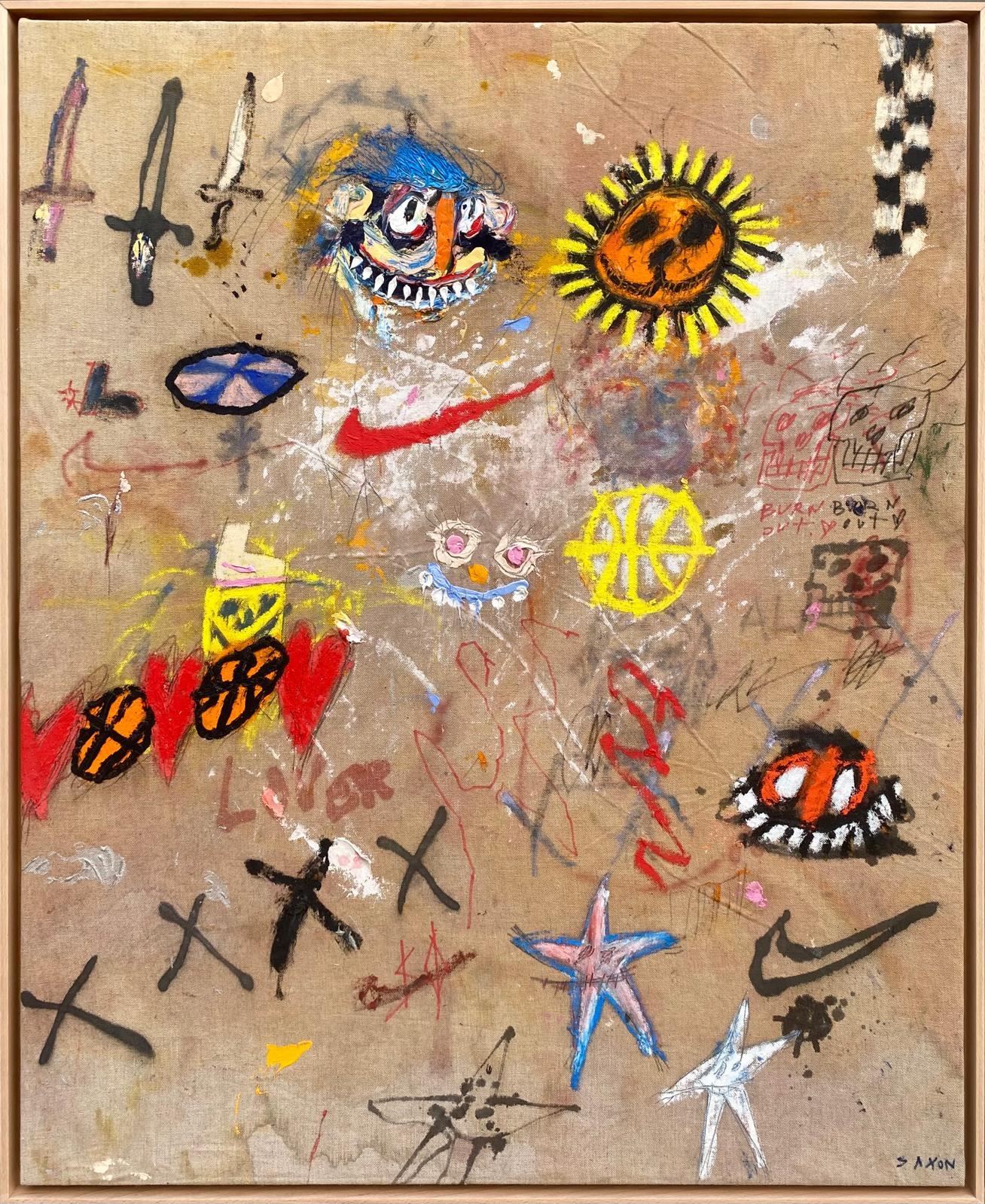 Raised by his Australian artist mother, Dianne Coulter, in country Victoria, and later immersed in fashion, design and tech that took him to New York City in 2016, Saxon Quinn has honed a visual vocabulary that communicates in the subliminal signs and symbols of global culture and trade. This past decade his work has shifted seamlessly between Sydney, Melbourne, Los Angeles, Manhattan, Hong Kong, Seoul, Madrid and Copenhagen in a series of shows that have resisted the idea of an artist being fixed by a particular time and place.