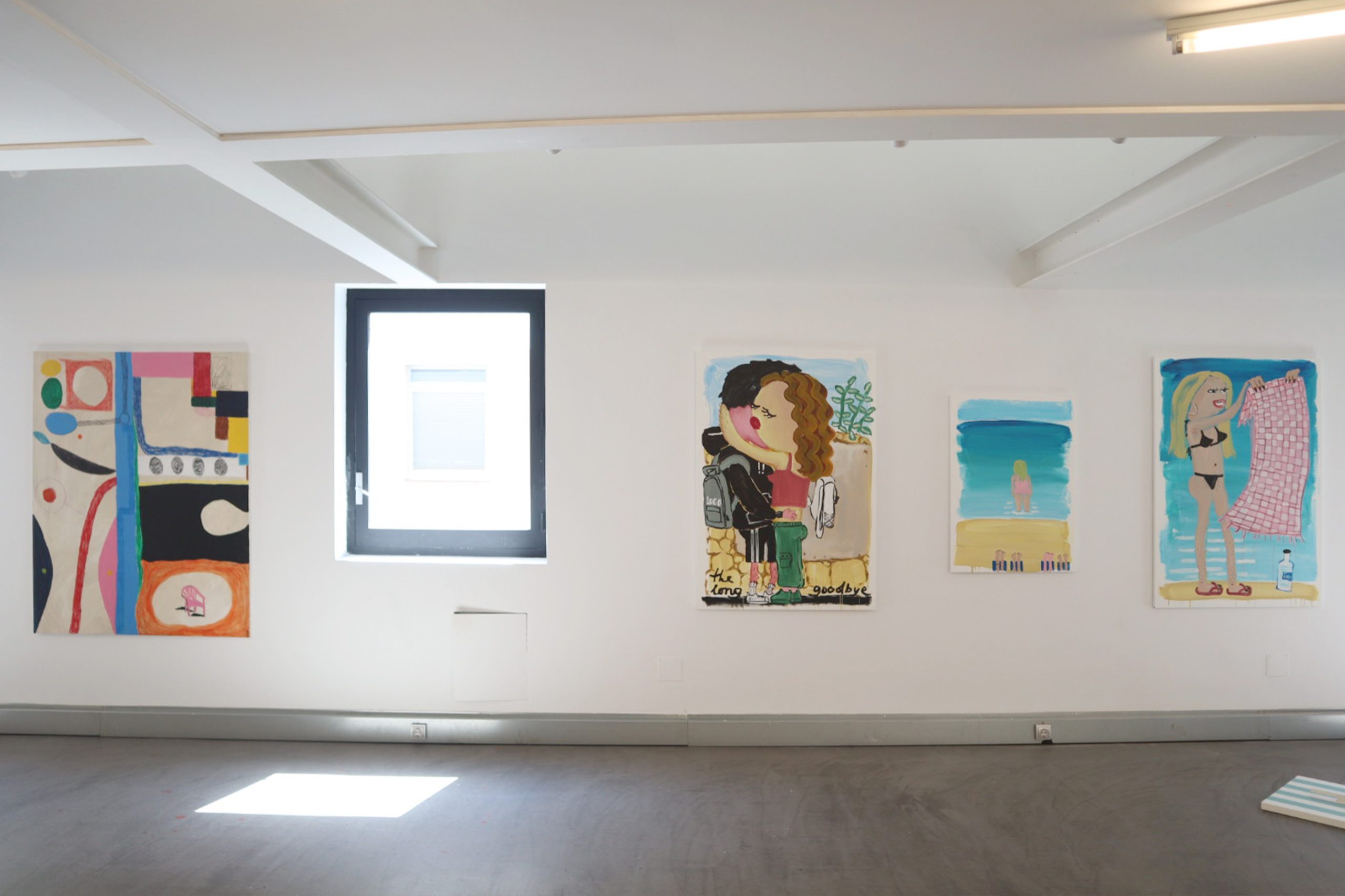 Katharina Arndt, (Alemania, 1981) con lienzos que presentan acciones frecuentes de un día caluroso de verano, donde nos sentimos trasladados.