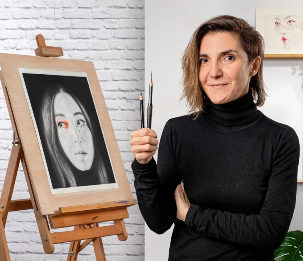 Lantomo, pseudonym of Antonella Montes, is an Italian artist based in Barcelona. The passion for drawing, inherited from her mother, has been a constant in her life. She studied architecture in Italy; then moves to Spain, specializing in scenography and exhibition design. Since 2010, Lantomo started to dedicate herself exclusively to painting, and her passion has definitely become a job. And in this journey, her stay of almost two years in Beijing, China, have left an indelible trace. Her drawings have become more accurate and detailed, her only colors the black and white, with touches of red, and the drawn faces have come to have Asian features.